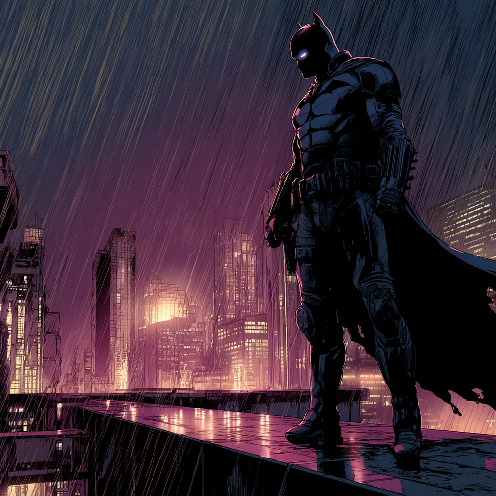 Batman is vengeance, but also justice. This field balances darkness and discipline with purpose and legacy.